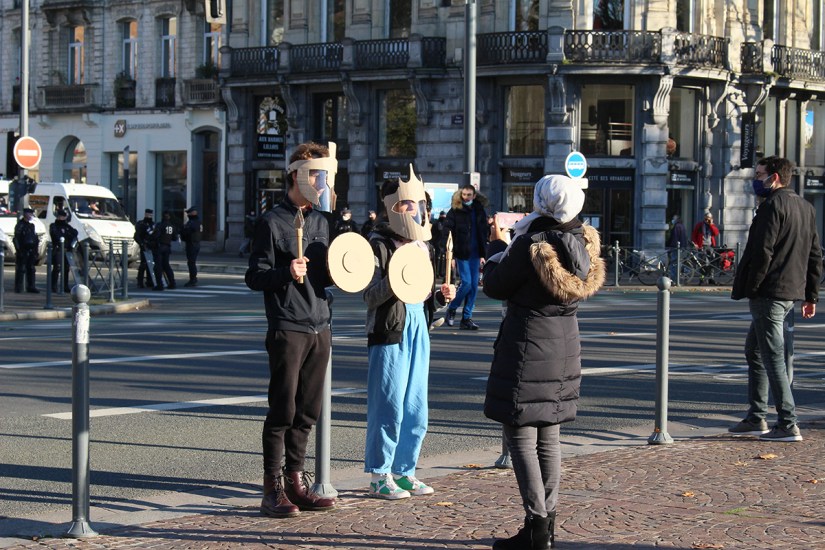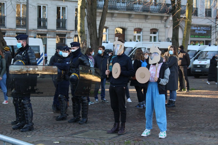 Jeu de rôle, 2020Performance activée le 28 novembre durant la manifestation contre la loi sécurité globale.