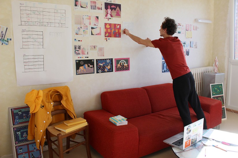 Production d’une série de 6 tapis en fibre polyamide torsadées, impression industrielle, 85 x 115 cm,