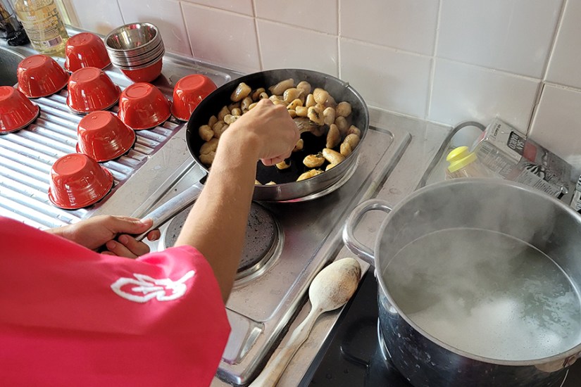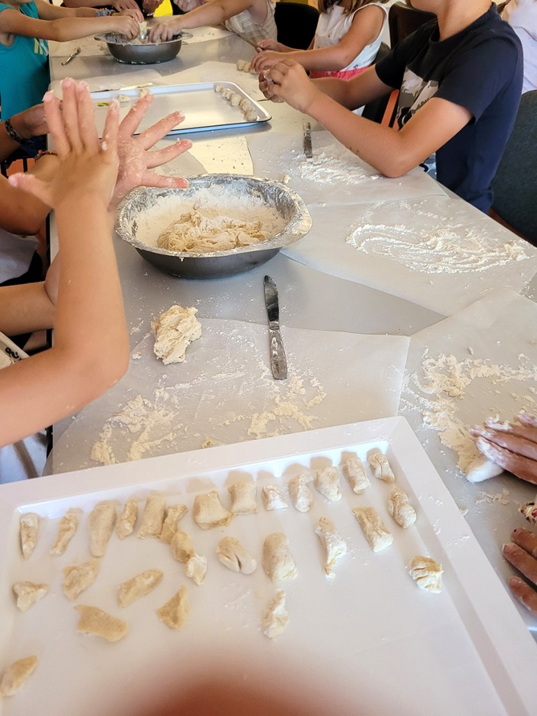 Distribution de gnocchis au pain rassis avec son pesto d’orties au repas du 14 juillet.