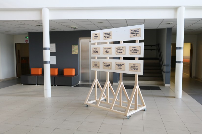 ERDV BBVMPTBDLDEM / LABYRINTHE DU MONDE QUI S’OCCUPE DE NOUS / MAISON DES ÉLÈVES SANS ÉTIQUETTES / RESTAURANT GOURMANT PAS COMPLÈTEMENT CALME / PRISON OUVERTE À TOUS DANS LES CHAMPS / ÉTABLISSEMENT DE LA LUNETTE DORÉE / CHÂTEAU DES LAPINS ET DES ANIMAUX HUMAINS / FOYER DU NORD QUI RÉSONNE LE PIANO / GRAND COCON ISOLÉ MAL CHAUFFÉ / ESCAPE GAME EN HOMMAGE À IGNACE / INFRASTRUCTURE SOLIDAIRE UN PEU À L’ÉCART / COIN DES CHOSES FAITES AVEC LES MAINS