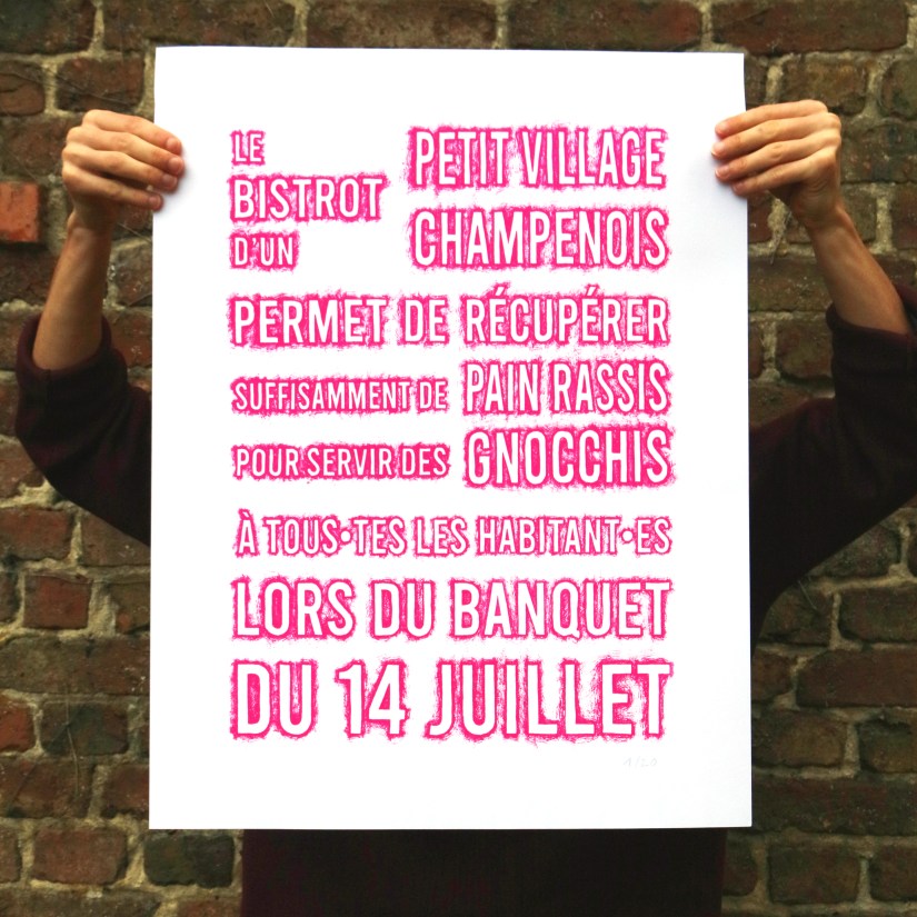 De 2020 à 2022, a eu lieu l’Observatoire des Excès et des Pénuries, un cycle de recherche et de création comportant l’activation de cinq protocoles artistiques durant lesquels nous nous sommes assigné·es des missions à accomplir au sein de territoires spécifiques. Ayant à l’esprit des questions liées aux modes de production et de distribution, à la responsabilité individuelle et collective et à la propriété, nous avons imaginé des actions capables d’avoir une portée sociale, laissant apercevoir ce que pourrait être un art du commun. Les cinq planches de journalisme spéculatif qui en découlent renvoient à des fantasmes politico-artistiques plus ou moins réalisés au cours de ces interventions. Accompagnée par des structures culturelles nous apportant du soutien sous différentes formes – financier, organisationnel, humain – la concrétisation de ces actions s’est néanmoins heurtée à la complexité du réel. Peu importe, nous ne sommes ni historien·nes, ni journalistes. Envisageant la méthodologie comme un medium, nous jouons avec la réalité afin de partager ce qui nous importe. À la véracité nous préférons le potentiel de fictionnalité. Ces cinq phrases sont à considérer comme autant de faits (divers) plausibles ou avérés, où la part de création artistique se dilue dans des décisions économiques et relationnelles prises collectivement.