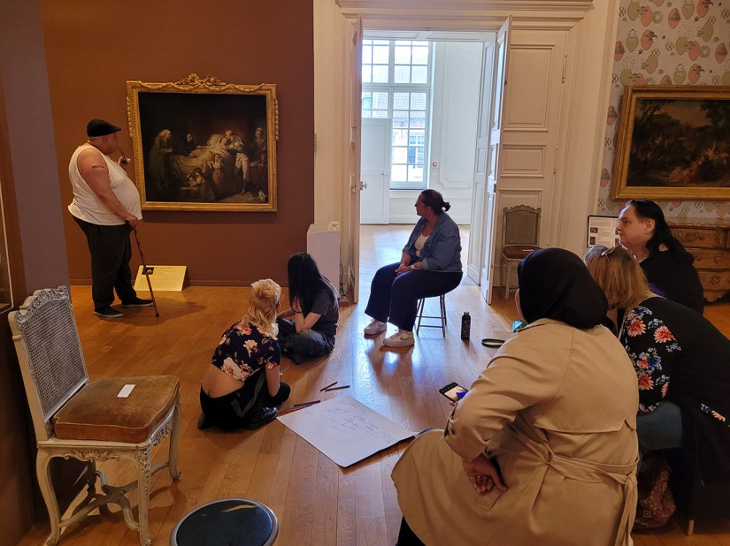 Protocole de co-création réalisé avec des adhérent·es et des travailleur·euses du centre social Saint-Roch et des membres de l’association des Amis du musée des beaux-arts de Cambrai entre juin et novembre 2024 au musée des beaux-arts de Cambrai. Impression numérique, crédit photo Florence Brochoire.