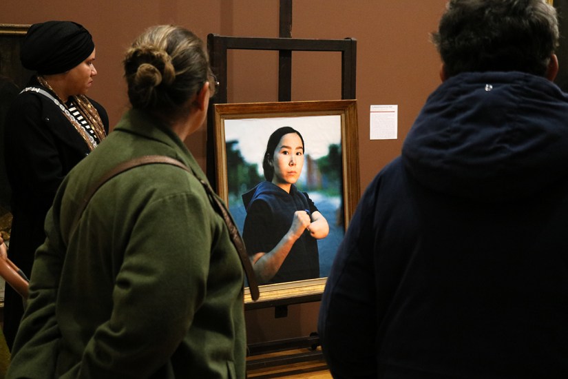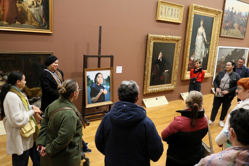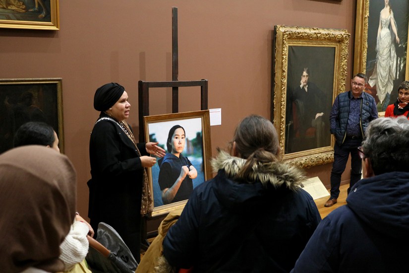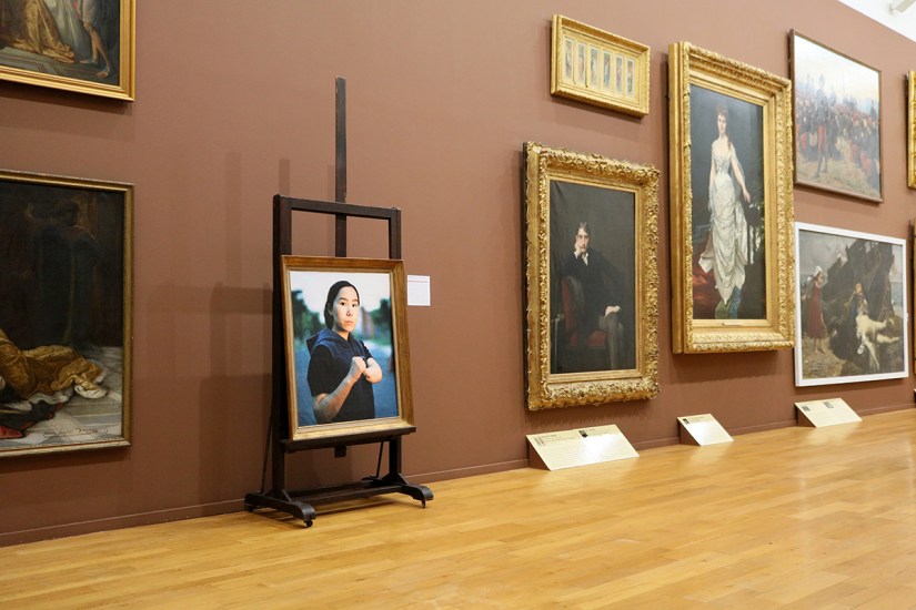 Se réunissant à raison d’une séance par mois, un groupe à géométrie variable s’est posé la question suivante : si nous devions choisir entre toutes les personnalités actuelles et vivantes, de laquelle accrocherions-nous le portrait aux côtés des toiles classiques et modernes de la collection du musée des beaux-arts de Cambrai ? À l’aide de temps d’analyse des modes et des sujets de représentations présents dans le musée, d’exercices de réflexions collectives et de débats ouverts, le protocole La communauté du portrait a abouti à l’accrochage du portrait de Zakia Khudadadi, para-taekwondoïste afghane, née en 1998 dansla province du Herat. Cette jeune femme a dû fuir son pays du fait de son appartenance à uneminorité ethnique persécutée par les talibans au pouvoir, mais aussi du fait de son aspiration à pratiquer un sport de haut niveau. Elle a participée aux Jeux paralympiques de 2024 à Paris en tant que membre de la Fédération des réfugiés. Elle habite aujourd’hui en France et souhaite demander la nationalité.
